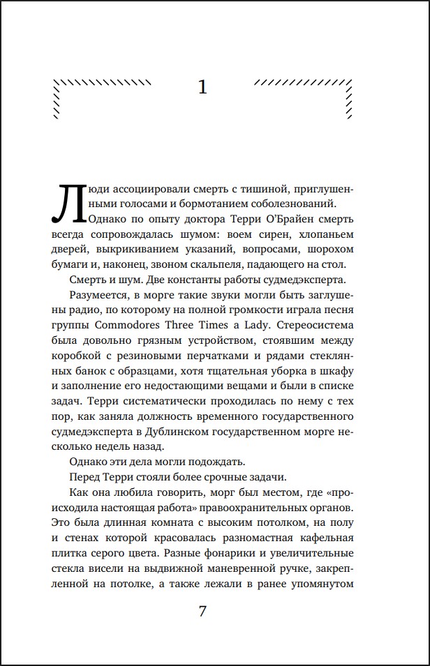 Главная героиня романа Терри О’Брайен – талантливый судмедэксперт, она недавно переехала из Шотландии в Дублин, где работает в морге и сотрудничает с ирландской полицией.