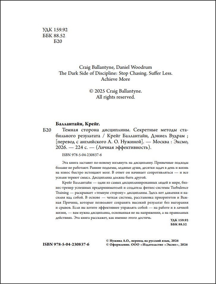 Эта книга перевернет ваше представление о дисциплине. Всё, что вы знали раньше – не работает. Мозг быстро устает от ежедневных подъемов в 5 утра, ледяного душа, 25 задач на день и жизни на пределе. Он начинает защищаться и сопротивляться, и все усилия идут насмарку.