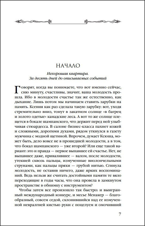 Виолончелистка с мировым именем Ксения Аверинцева покупает квартиру с видом на канал Грибоедова. Узнав об этом, ее бабка умирает от сердечного приступа. По роковому совпадению она жила в той старой квартире и была подозреваемой по так и не раскрытому делу.