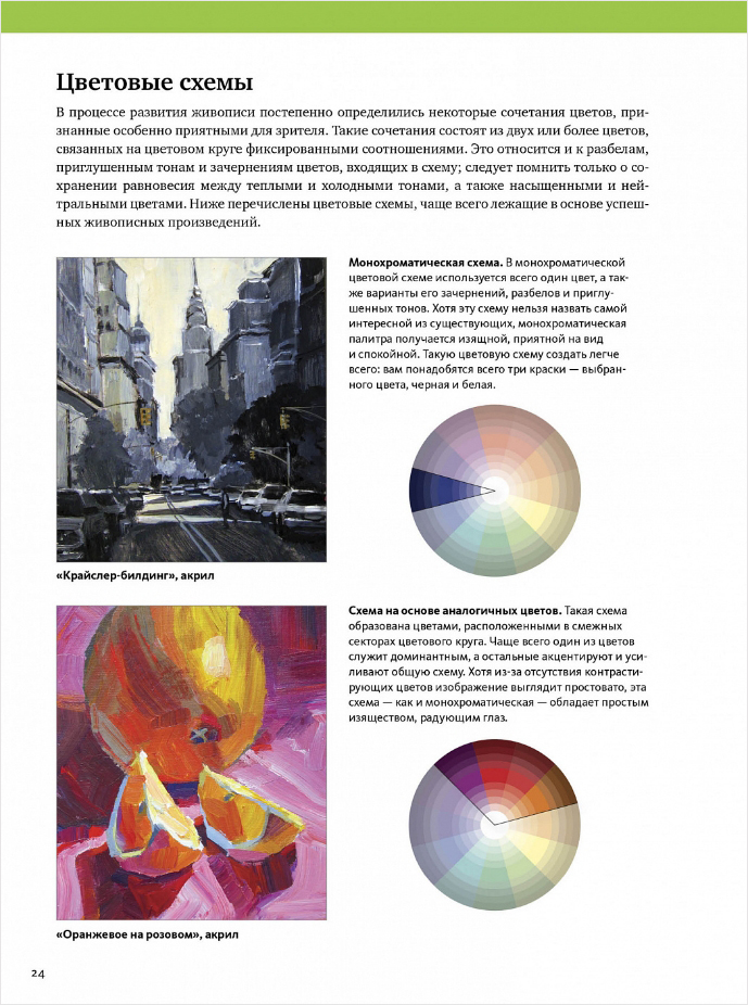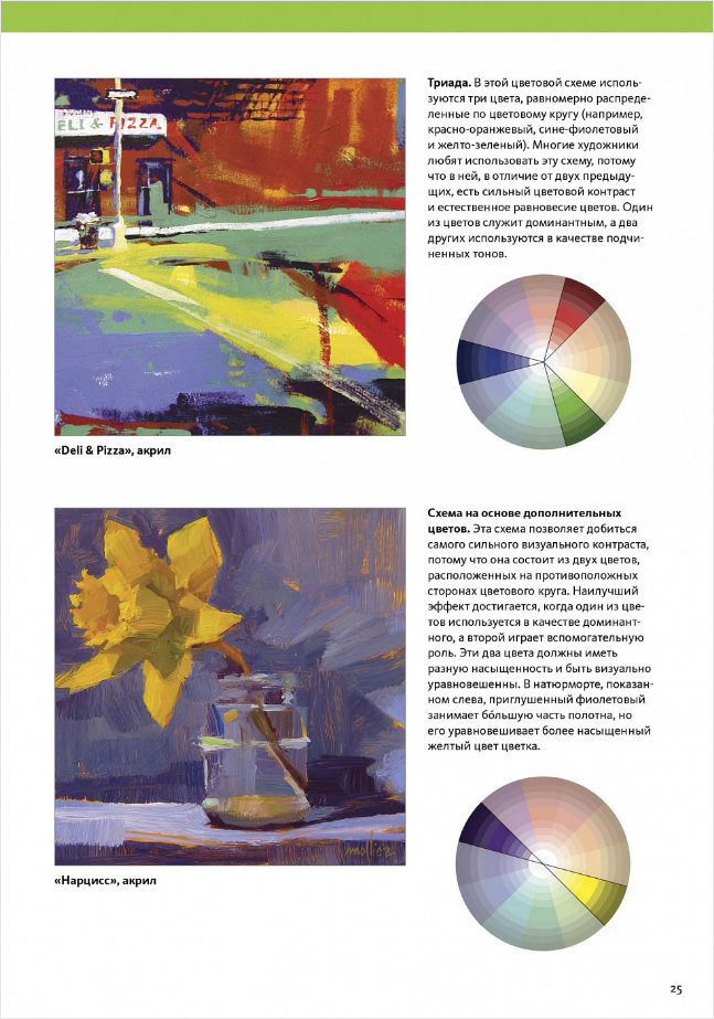 Оставить отзывВ книге рассказывается о самых важных аспектах теории цвета в приложении к живописи. Здесь вы найдете всю информацию, которая нужна, чтобы в ваших произведениях были реализованы динамические, гармоничные и продуманные цветовые решения.