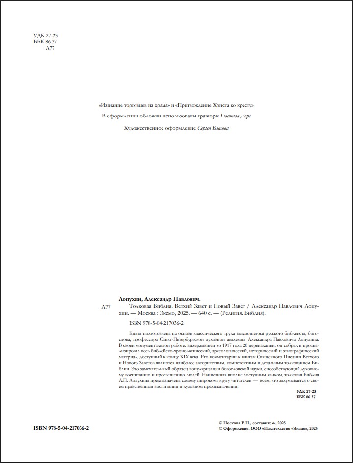 Написанная вполне доступным языком, Толковая Библия А.П. Лопухина предназначена самому широкому кругу читателей – всем, кто задумывается о своем нравственном воспитании и духовном предназначении.