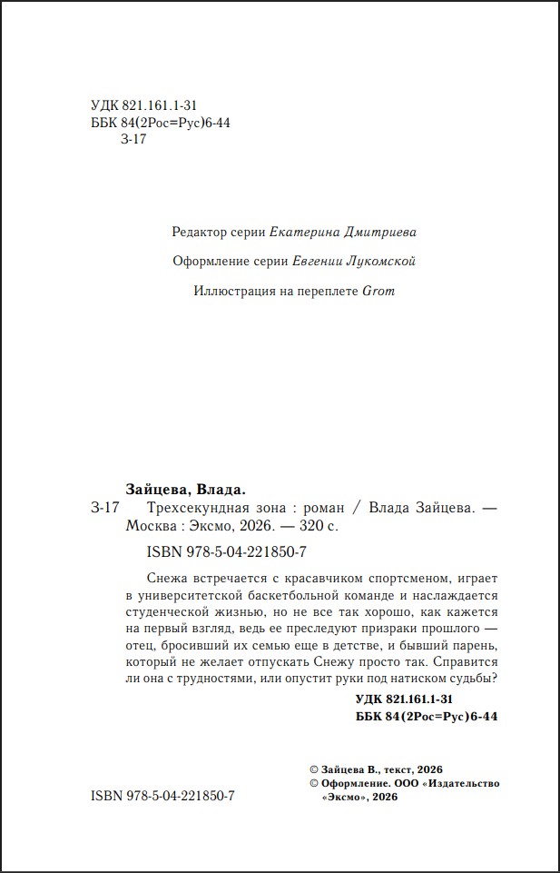 «Трехсекундная зона» – это роман о первой и трогательной любви, которая врывается в жизнь неожиданно и переворачивает ее с ног на голову. Эта книга о поиске себя, о настоящей дружбе и ценности семьи, ведь вместе с ней можно справиться с чем угодно.