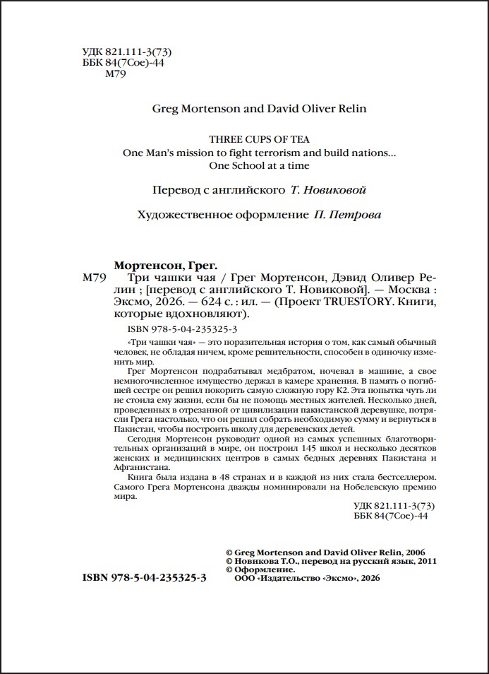 Оставить отзыв«Три чашки чая» – это поразительная история о том, как самый обычный человек, не обладая ничем кроме решительности, способен в одиночку изменить мир. Грег Мортенсон подрабатывал медбратом, ночевал в машине, а свое немногочисленное имущество держал в камере хранения.