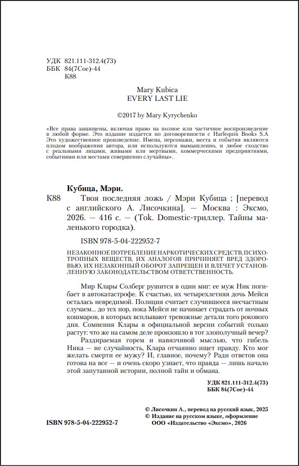 Раздираемая горем и навязчивой мыслью, что гибель Ника – не случайность, Клара отчаянно ищет правду. Кто мог желать смерти ее мужу? И, главное, почему? Ради ответов она готова на все. Но очень скоро узнает, что правда – лишь начало этой запутанной истории, полной тайн и обмана…