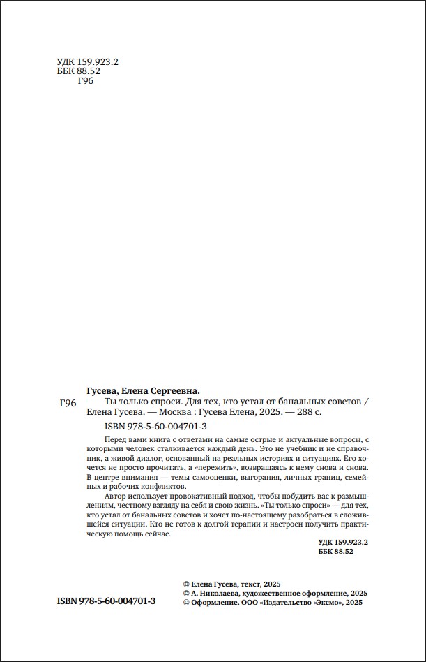 Его хочется не просто прочитать, а «пережить», возвращаясь к нему снова и снова. В центре внимания – темы самооценки, выгорания, личных границ, семейных и рабочих конфликтов.