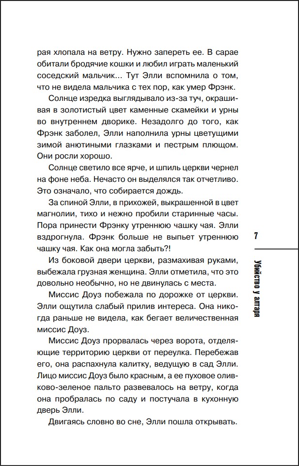 В одном из зеленых районов Лондона все знают Элли Квик из благотворительного магазинчика. Недавно овдовев, она целыми днями смотрит в окно. Пока в один из вечеров миссис Доуз, которую не так-то легко вывести из равновесия, буквально врывается в дом Элли. Но на то есть веская причина – труп перед церковным алтарем…