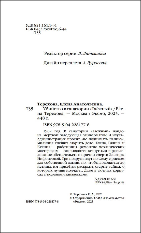 Оставить отзыв1982 год. В санатории «Таёжный» найдена мёртвой заведующая универмагом «Силуэт». Администрация просит «не поднимать панику», милиция спешит закрыть дело.