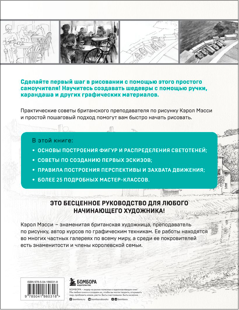 Оставить отзывСделайте первый шаг в рисовании с помощью этого простого самоучителя! Научитесь создавать шедевры с помощью ручки, карандаша и других графических материалов. Практические советы британского преподавателя по рисунку Карол Масси и простой пошаговый подход помогут вам быстро начать рисовать.