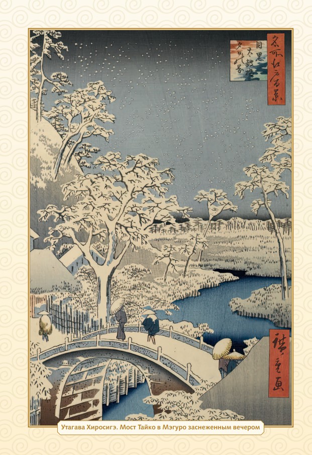 - Шедевры легендарных художников: от «Большой волны» Кацусики Хокусая до лирических пейзажей Утагавы Хиросигэ и портретов утонченных красавиц Китагавы Утамаро.