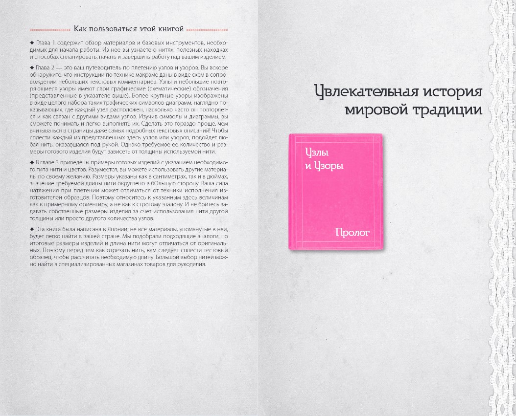 В Главе 3 представлены примеры готовых изделий и советы по выбору шнура нужного типа и цветов.