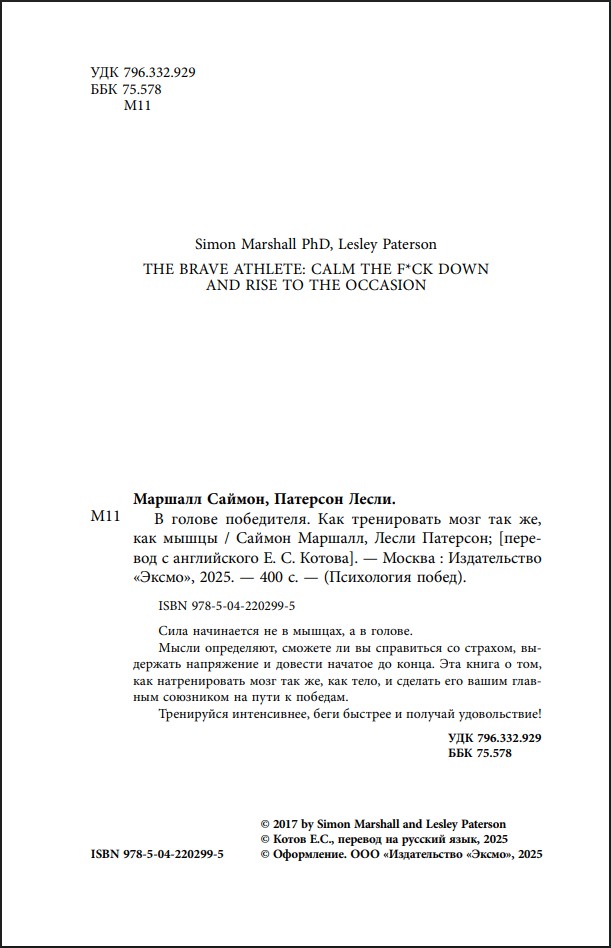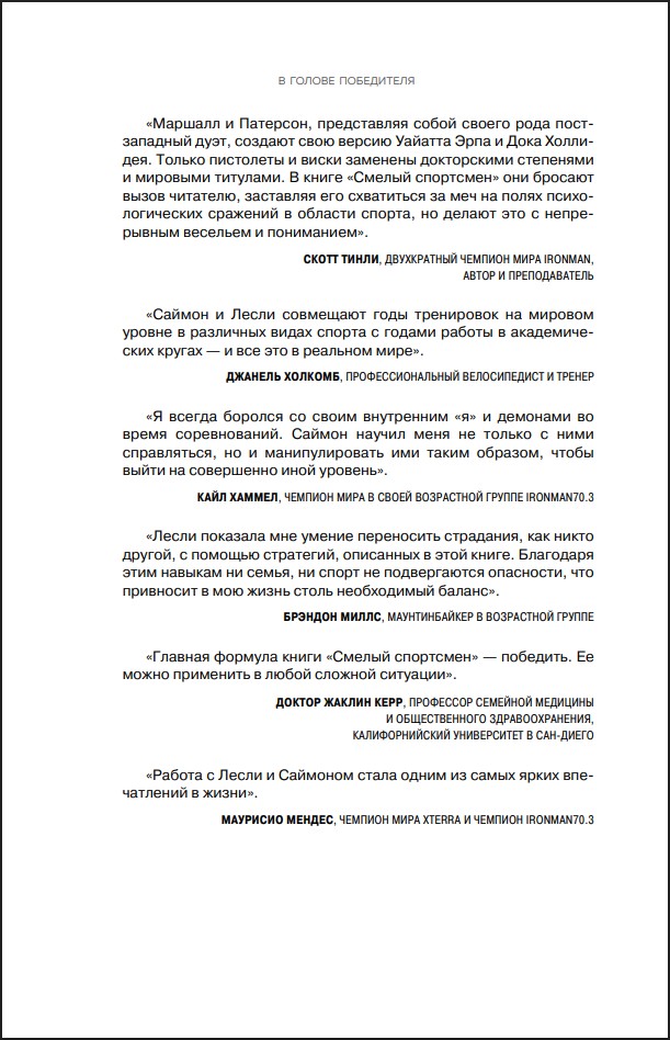 Мысли определяют, сможете ли вы справиться со страхом, выдержать напряжение и довести начатое до конца. Эта книга о том, как натренировать мозг так же, как тело, и сделать его вашим главным союзником на пути к победам.