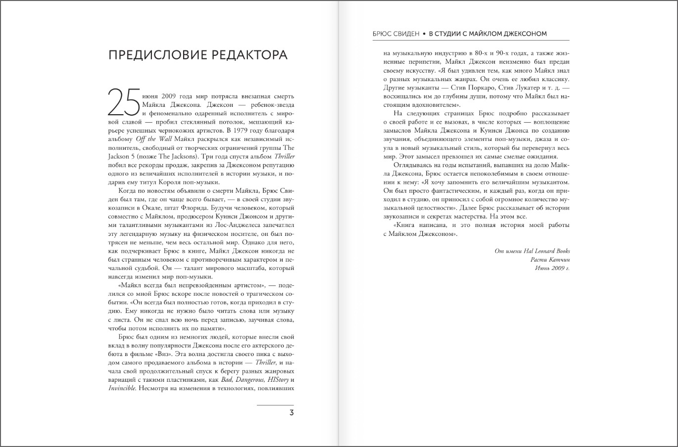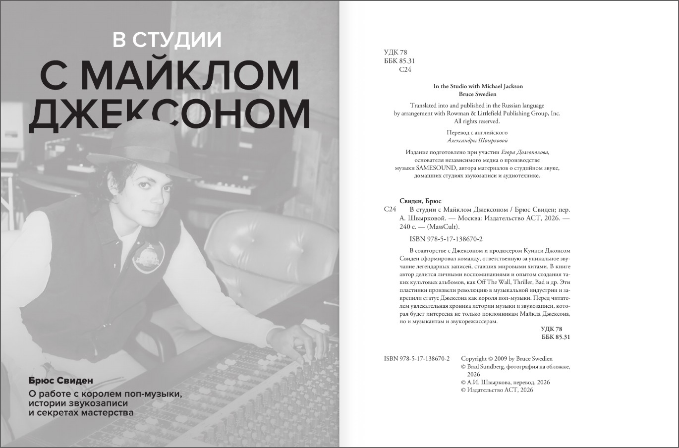 Книга «В студии с Майклом Джексоном» рассказывает о работе Брюса Свидена – американского звукоинженера, музыкального продюсера и пятикратного лауреата премии «Грэмми», который был близким другом и коллегой Майкла Джексона.