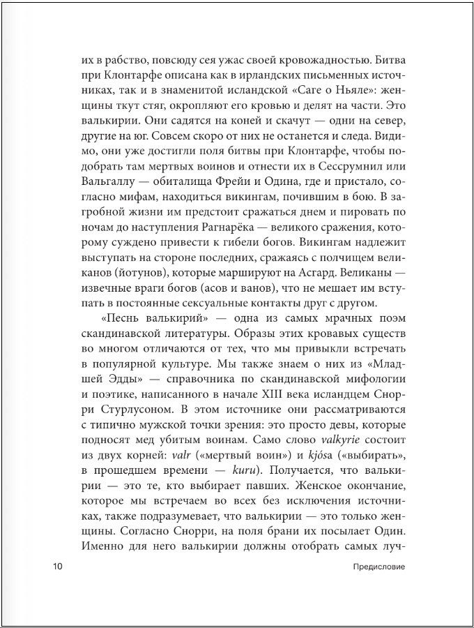 Валькирии – сверхъестественные существа женского пола, которые выбирают, кому умереть, а кому жить на поле боя. Они защищают одних, но направляют копья, стрелы и клинки мечей в тела других. Мифы викингов о валькириях пытаются возвыситьбанальность войны – сделать боль и страдания славными и достойными. Женщины в этих историях принимают полное участие в своих общинах, к лучшему или к худшему. Кто такие валькирии и чем они отличаются от обычных скандинавских женщин? Почему валькирии не привязаны к семье и детям, что для них значит мужчина и зачем ей смерть?