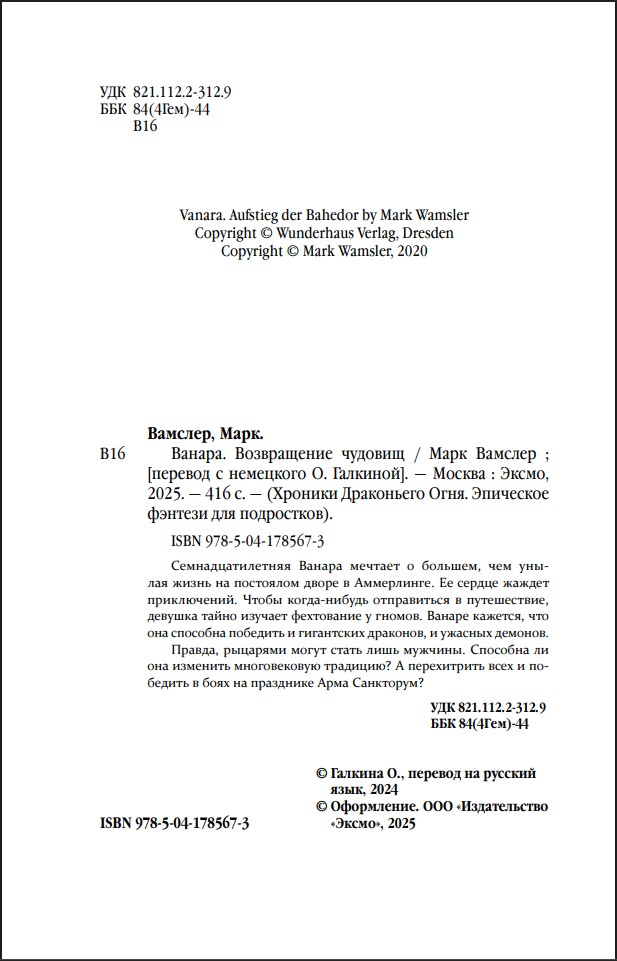 Оставить отзывСемнадцатилетняя Ванара мечтает о большем, чем унылая жизнь на постоялом дворе в Аммерлинге. Ее сердце жаждет приключений. Чтобы когда-нибудь отправиться в путешествие, девушка тайно изучает фехтование у гномов.