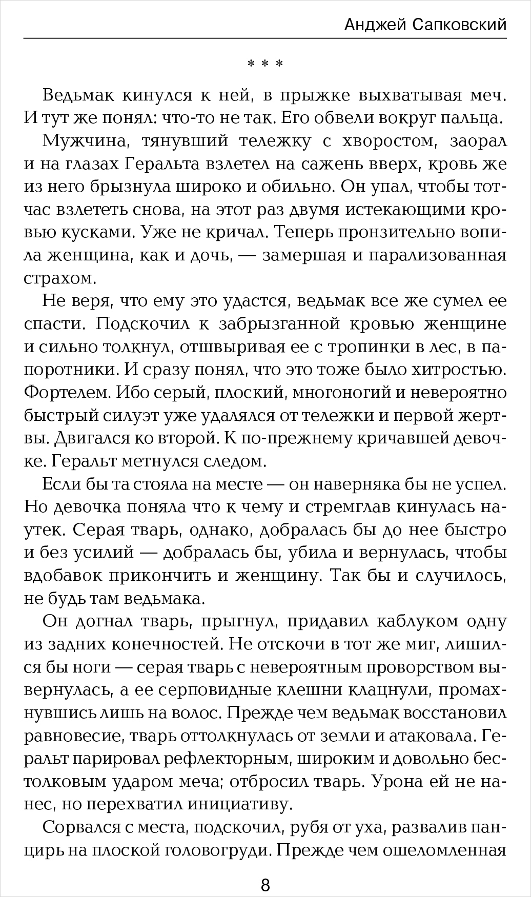 Оставить отзывВсегда, всегда будет существовать тьма. И всегда будет таящееся в темноте Зло, всегда будут во тьме клыки и когти, убийство и кровь. И всегда будут нужны ведьмаки. И крайне необходимо, чтобы они появлялись там, где в них нужда.