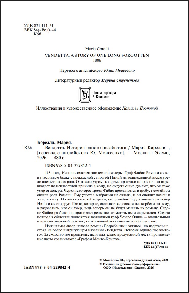 Описание книги Вендетта: История одного позабытого (подарочное издание):