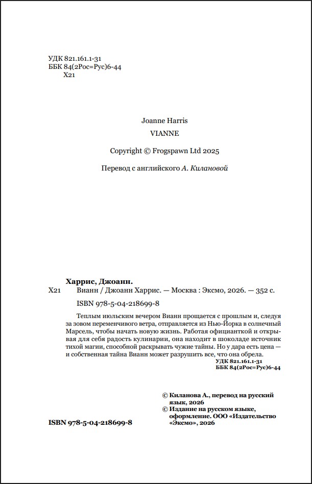 Мировая звезда и автор бестселлера «Шоколад» Джоанн Харрис возвращается с долгожданной историей о прошлом Вианн – за шесть лет до того, как она откроет свою легендарную, скандальную шоколадную лавку в тихой деревушке Ланскне!