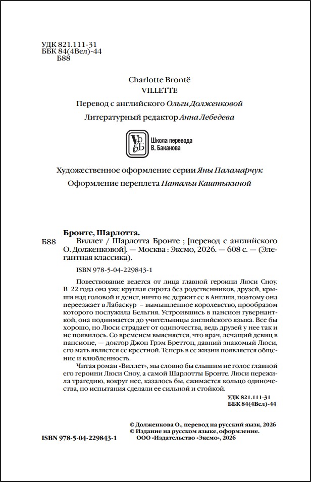 Оставить отзывПовествование ведется от лица главной героини Люси Сноу. В 22 года она уже круглая сирота без родственников, друзей, крыши над головой и денег, ничто не держит ее в Англии, поэтому она переезжает в Лабаскур – вымышленное королевство, прообразом которого послужила Бельгия.