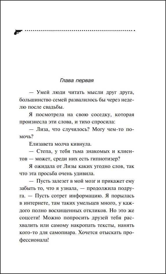 И вот её соседка, красивая, умная и богато упакованная Лиза Максимова, вдруг заявляет: «Мне нужен гипнотизёр! Пусть вытрет из моей головы память о том, что я узнала».