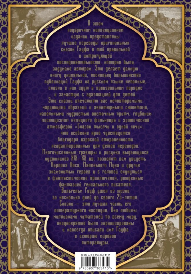 В этом подарочном коллекционном издании представлены лучшие переводы оригинальных сказок Гауфа в той правильной и интригующей последовательности, которая была задумана автором. Это делает данную книгу уникальной, поскольку большинство публикаций Гауфа на русском языке неполные и сказки в них идут в произвольном порядке и зачастую с адаптацией для детей. Эти сказки впечатлят вас неповторимыми чарующими образами и авантюрными сюжетами, навеянными мудростью восточных притч, глубоким мистицизмом немецкого фольклора и эротической атмосферой «Сказок тысячи и одной ночи», что особенно ярко чувствуется благодаря взрослой откровенности неадаптированных для детей переводов.