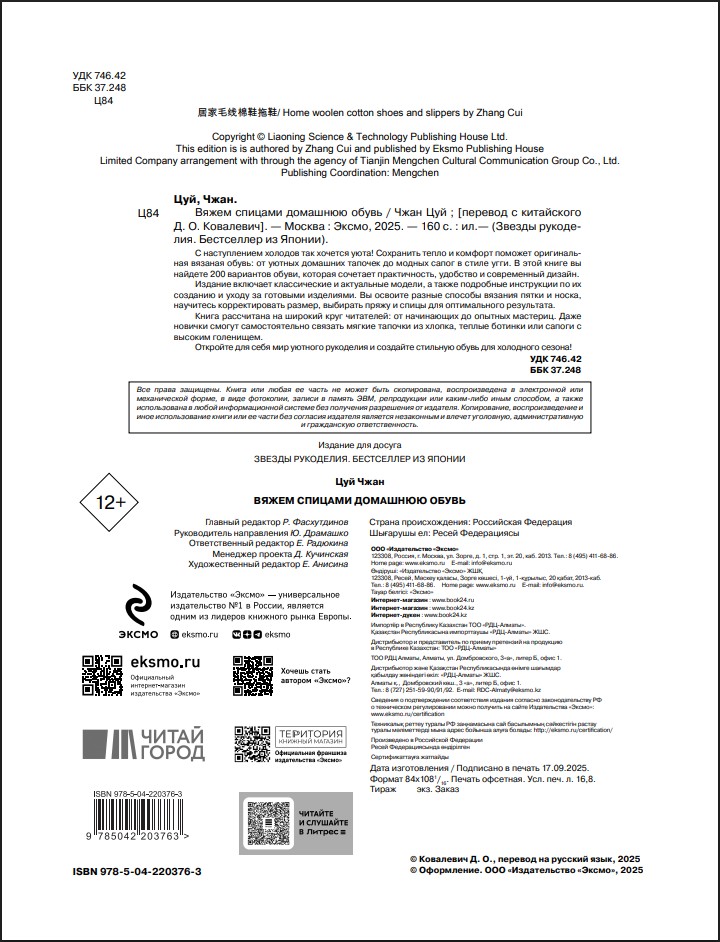 Книга рассчитана на широкий круг читателей: от начинающих до опытных мастериц. Даже новички смогут самостоятельно связать мягкие тапочки из хлопка, теплые ботинки или сапоги с высоким голенищем. Откройте для себя мир уютного рукоделия и создайте стильную обувь для холодного сезона!