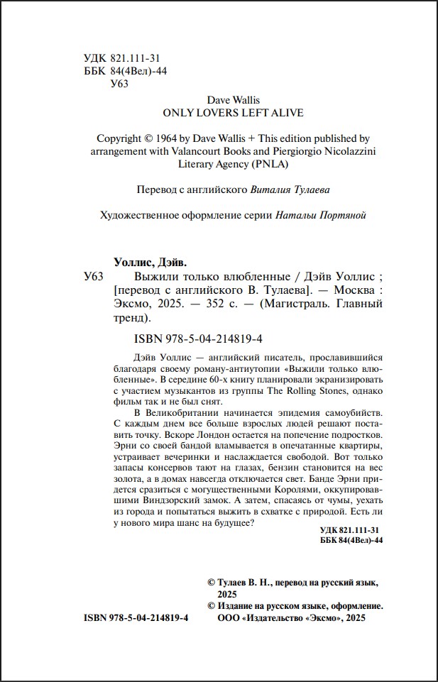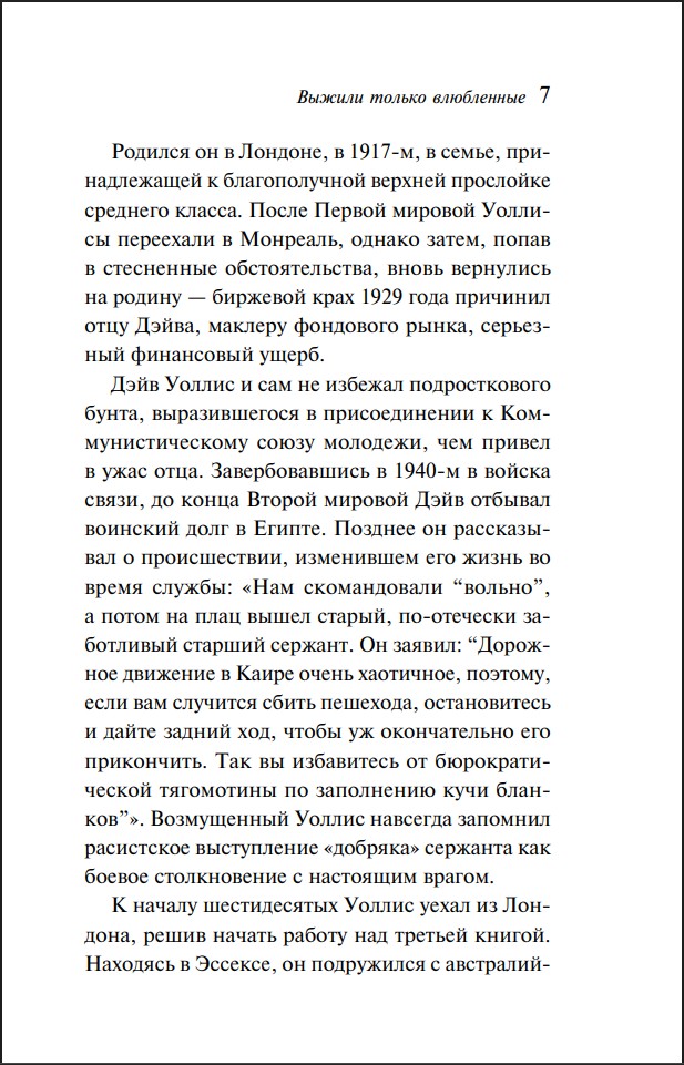 Дэйв Уоллис – английский писатель, прославившийся благодаря своему роману-антиутопии «Выжили только влюбленные». В середине 60-х книгу планировали экранизировать с участием музыкантов из группы The Rolling Stones, однако фильм так и не был снят.