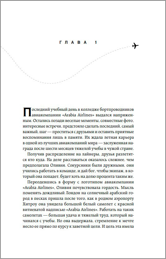 Оливия Паркер была рождена летать. Ее не остановят ни личная трагедия, ни смена родного Лондона на экзотический Дубай, ни высокомерный капитан двухпалубного А380, с которым Оливия вынуждена заключить пари – проигравший уходит с борта крупнейшего пассажирского самолета. Даниэль Фернандес Торрес трижды пожалел о своем решении взять в члены экипажа заносчивую англичанку. Эта девушка – буря и шторм среди ясного неба, порыв бокового ветра, меняющий направление самолета. Невозможная, упрямая, гордая и такая… прекрасная.