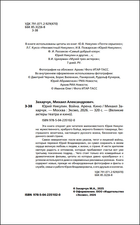 Описание книги Юрий Никулин – Война. Арена. Кино: