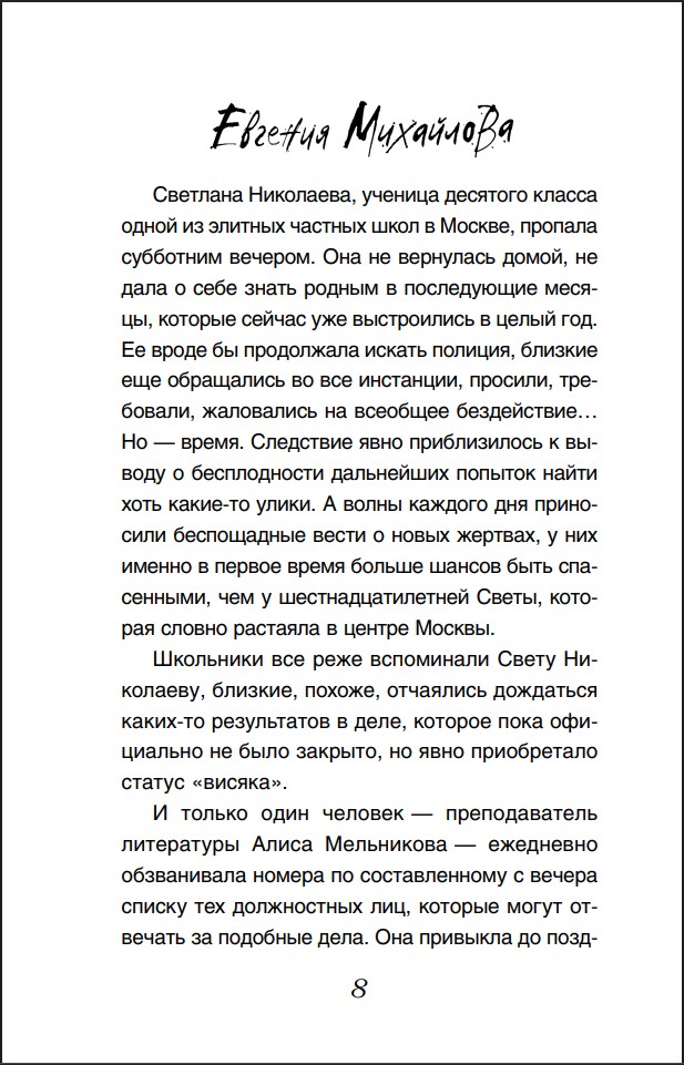 Оставить отзывВ элитной московской школе пропадает ученица Светлана Николаева. Ее учительница литературы, Алиса Мельникова, потрясенная равнодушием окружающих, начинает собственное расследование.