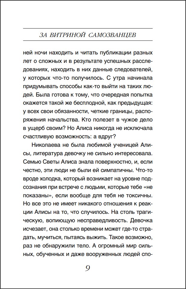 Алиса обращается за помощью к писателю Владимиру Морозову, который выходит на следователя Федора Ильина. Вместе они пытаются раскрыть тайну исчезновения, но сталкиваются с нежеланием родственников и друзей Светланы делиться информацией. Тогда Алиса находит в Сети частного детектива Сергея Кольцова, и они объединяют усилия.