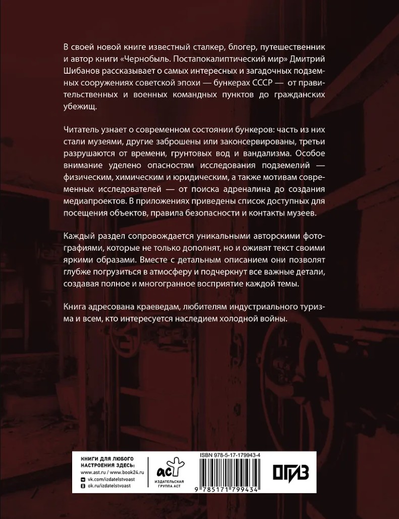 В своей новой книге известный сталкер, блогер, путешественник и автор книги «Чернобыль. Постапокалиптический мир» Дмитрий Шибанов – рассказывает об интересных объектах экстремального туризма – военных бункерах времен СССР.