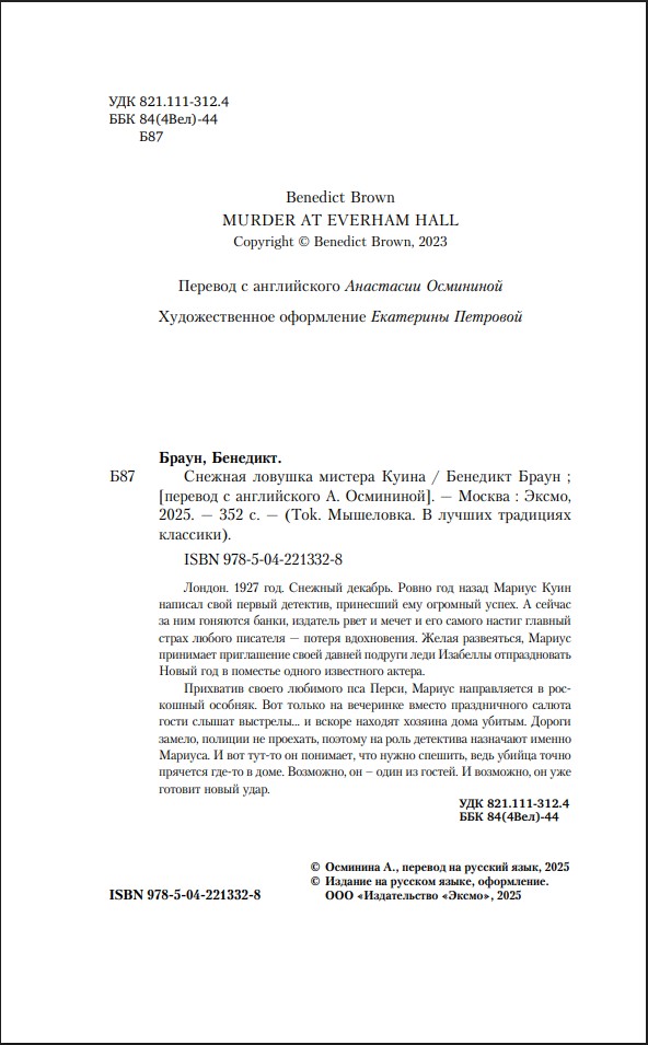 Лондон. 1927 год. Снежный декабрь. Ровно год назад Мариус Куин написал свой первый детектив, принесший ему огромный успех. А сейчас за ним гоняются банки, издатель рвет и мечет, и его самого настиг главный страх любого...