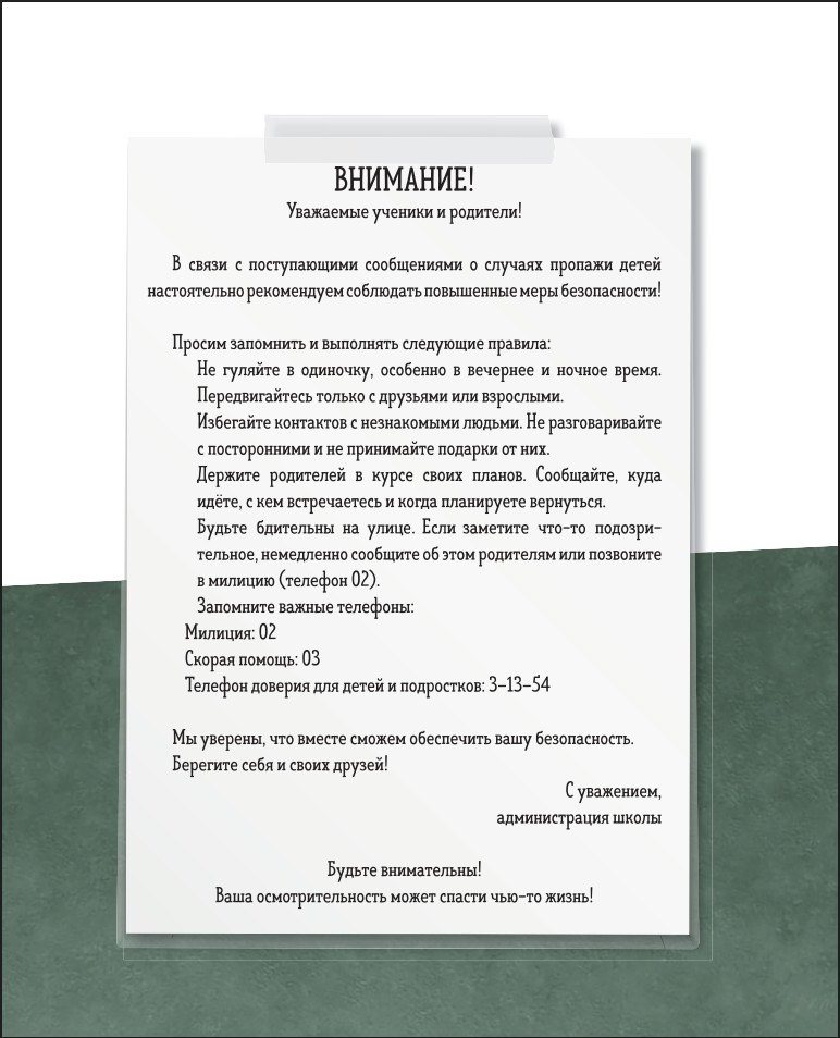 Красочные форзацы с пустующими школьными коридорами и объявлении о пропавших учениках. В новом издании вы узнаете, как именно пропали ребята из рассказа «Зайчик», а также познакомитесь с тремя совершенно новыми историями и пройдете тест, который позволит узнать – кто вы из героев культовой вселенной.
