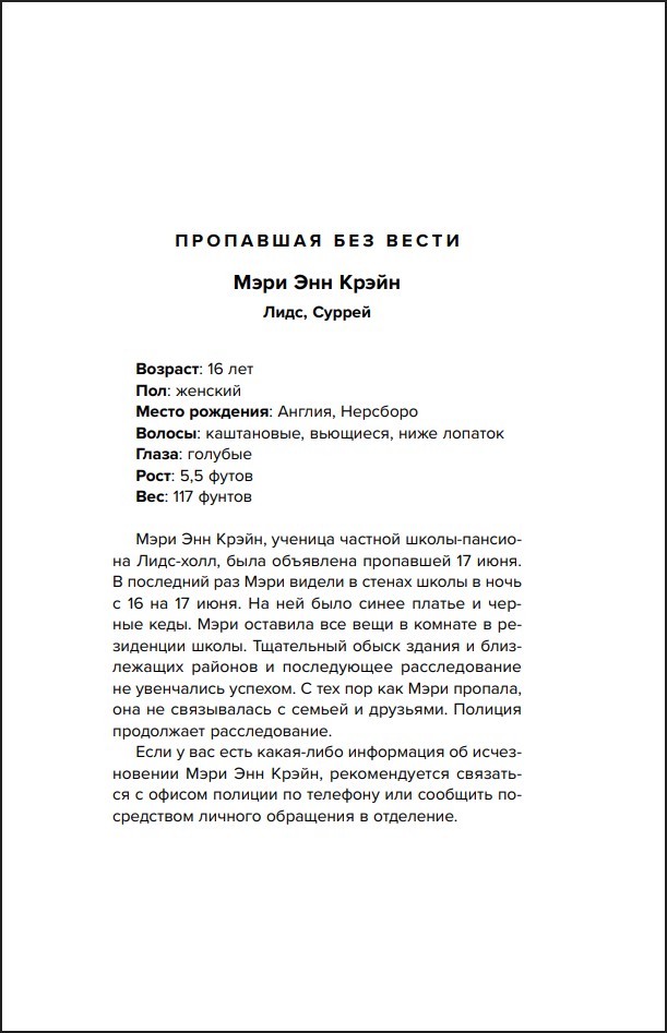 Его поглощает калейдоскоп бурных ночей и беспорядочных связей, но порой через густое марево проступает тень прошлого – туманный призрак девушки, исчезнувшей из школы-пансиона, где учился Майкл. Расследование полиции зашло в тупик – ни улик, ни подозреваемых, – но семья пропавшей нанимает частного детектива, который намерен выяснить правду. Даже ценой собственной жизни.