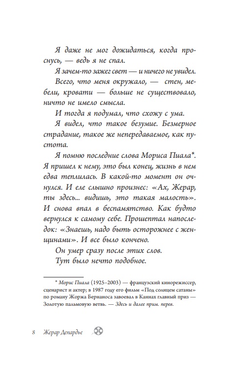 Но так ли хорошо мы его знаем? Не прячется ли за обликом монстра невинный младенец? Новая книга Депардье откроет его для читателя совсем с Другой стороны. С той, о которой читатель даже не подозревал. Это не хроника творчества актера, а размышление о жизни того, кто не устал восхищаться красотой мира, растворяясь в том, что его окружает, тот, кто не устал просто любить.