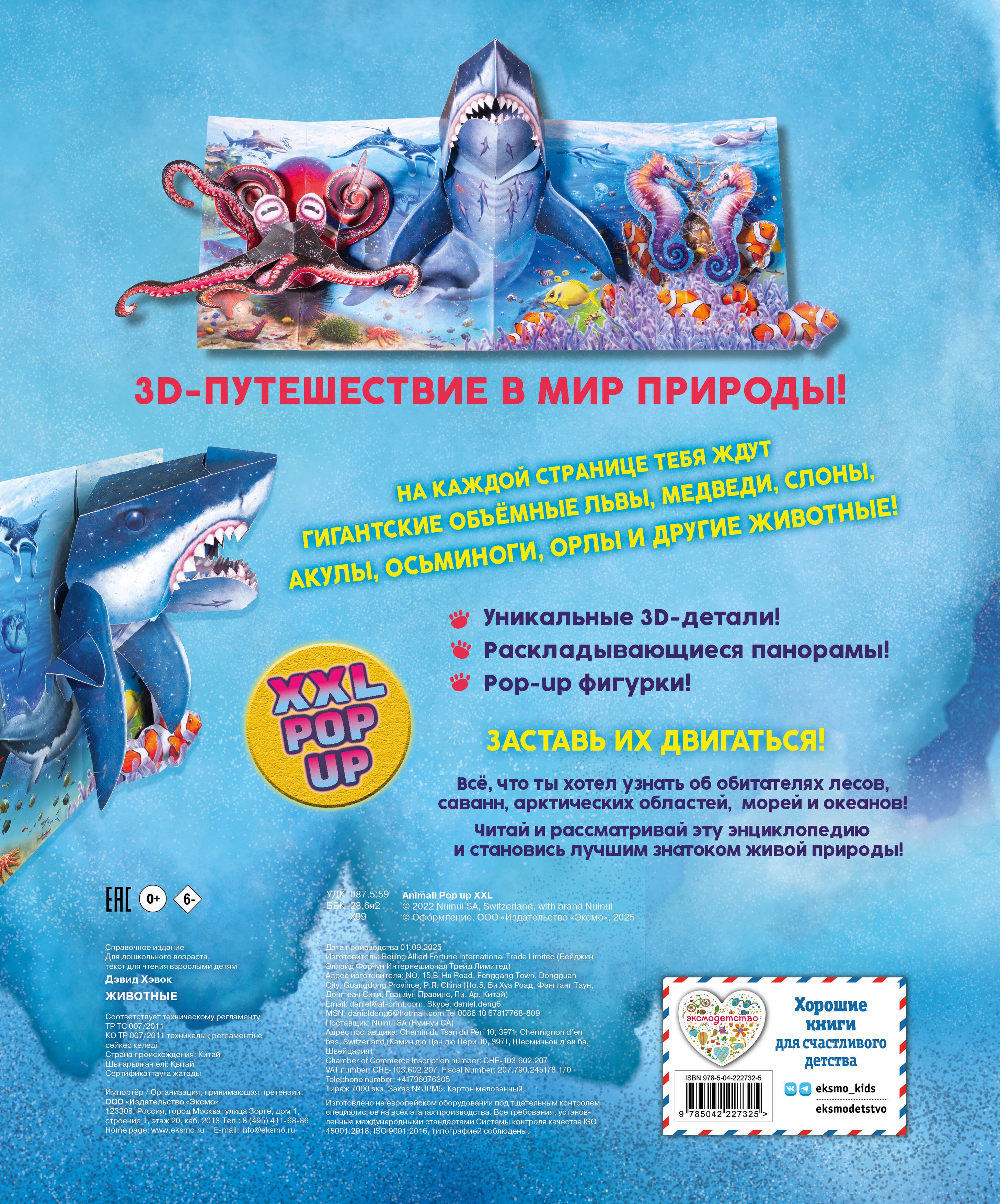 Интерактивная XXL энциклопедия о животных – это яркая детская энциклопедия с pop-up элементами, которые превращают чтение в увлекательное исследование мира природы.