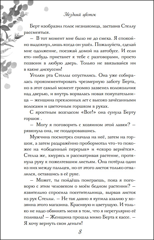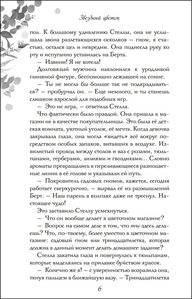 Оставить отзывТринадцатилетняя Стелла не похожа на других девчонок. Она помогает папе в цветочном, от ее болтовни на родном языке мамы растения крепнут, а чем болеет азалия девочка понимает с одного взгляда.