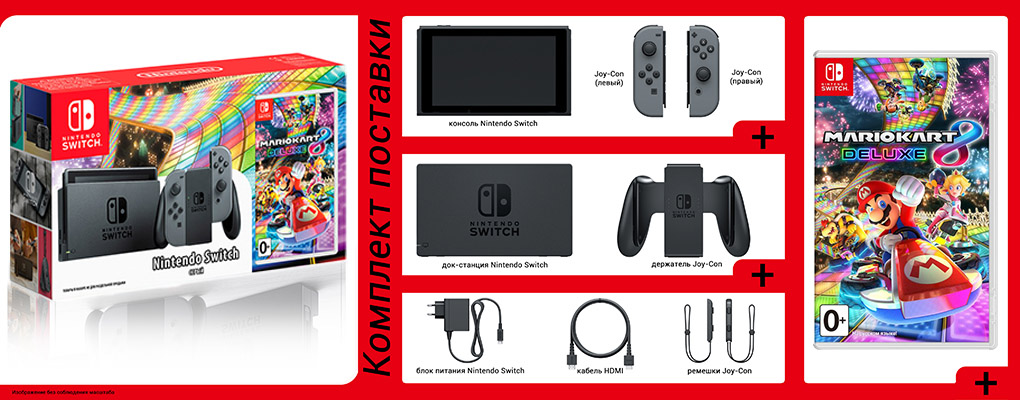 Игровая консоль Nintendo Switch (серый) + игра Mario Kart 8. Deluxe