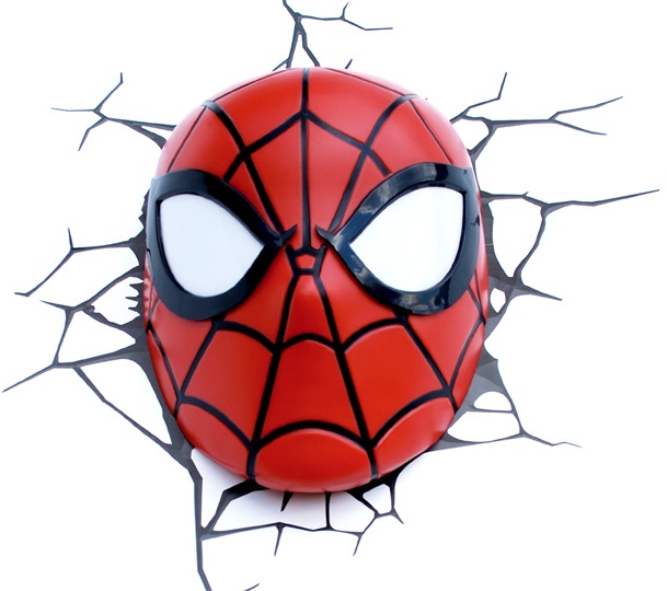 Будьте оригинальны в выборе подарка! Если вы хотите преподнести нечто неординарное, то обратите внимание на 3D светильник от 3DLightFX, выполненный в виде маски Человека-Паука, которая буквально въехала в стену, оставив на ней трещины. Но не пугайтесь, это всего лишь забавная 3D наклейка-имитация трещины. Все знакомые будут просто ошеломлены, увидев этот светильник.