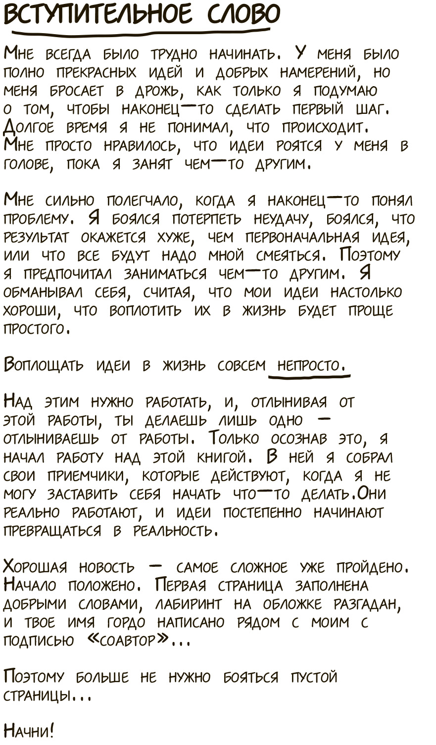 В этом блокноте автор собрал приемчики, которые помогут тебе перестать сомневаться в себе и своей силе, позволив скрытым талантам выбраться наружу. Бери карандаш, включай голову, открывай блокнот и начинай творить!