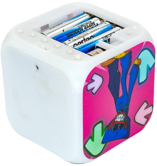 Режимы подсветки можно переключать кнопками на панели управления, которая находятся на нижней стороне часов. LED экран работает от 2 батареек типа AG13, подсветка питается от 4 батареек типа AAA (в комплект не входят).
