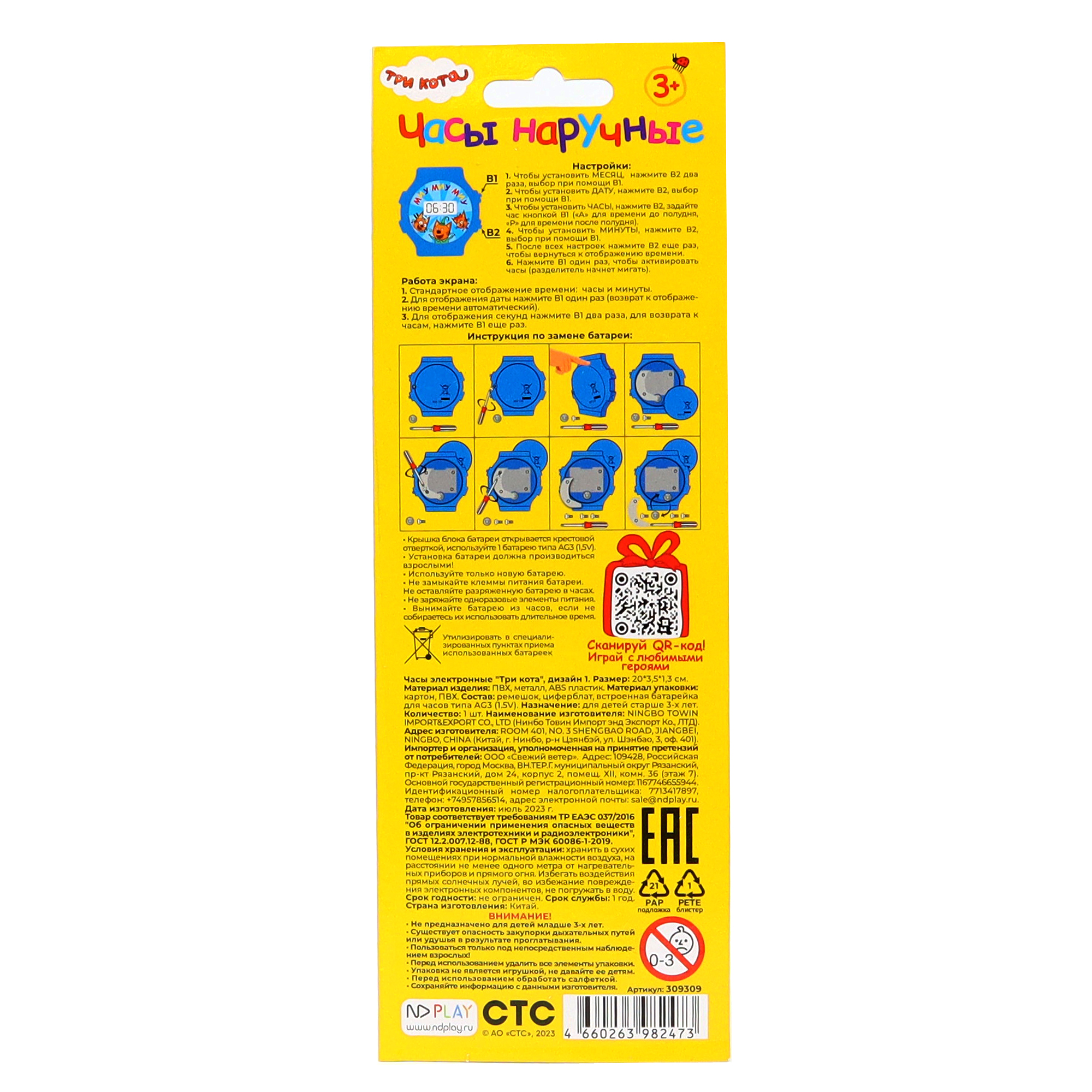 Комплектация часов электронны Три кота: