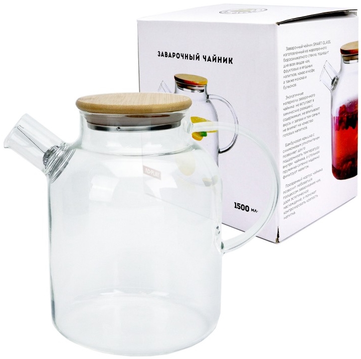 Чайник заварочный с бамбуковой крышкой (1500 мл / стекло)