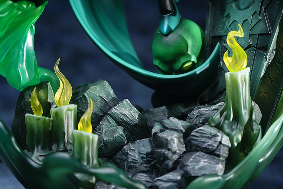 Фигурка воссоздана с максимальной детализацией: от красивых распущенных волос до тщательно обработанного надгробия. Печаль, навсегда оставшаяся в ее сердце, проявляется в виде летающих вокруг нее духов.