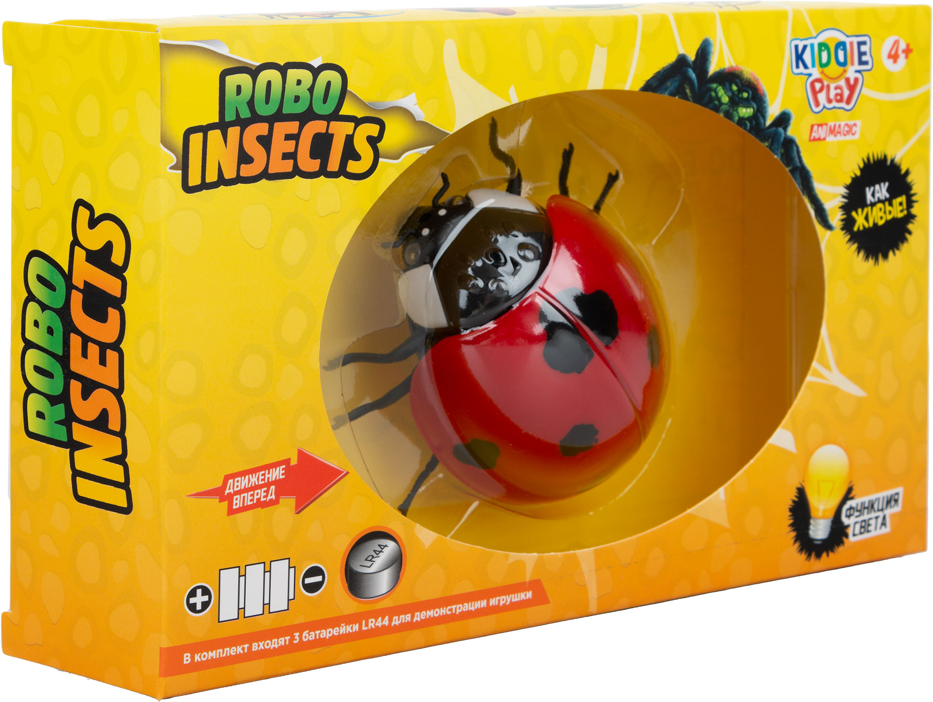 Новая коллекция детских интерактивных игрушек от KiddiePlay позволит ребенку полностью погрузиться в изучение удивительного мира насекомых! Паук, божья коровка, кузнечик,паучок, пчелка, таракан, тарантул – все это новые детские игрушки-инерционные питомцы от KiddiePlay. Интерактивная развивающая игрушка станет оригинальным подарком для мальчиков и для девочек – каждый будет рад такому прекрасному подарку на праздник или по любому другому поводу. Игрушка имеет встроенный двигатель, оснащена звуковыми и световыми эффектами. Интерактивные развивающие игрушки от KiddiePlay подходят для детей от 4 лет.