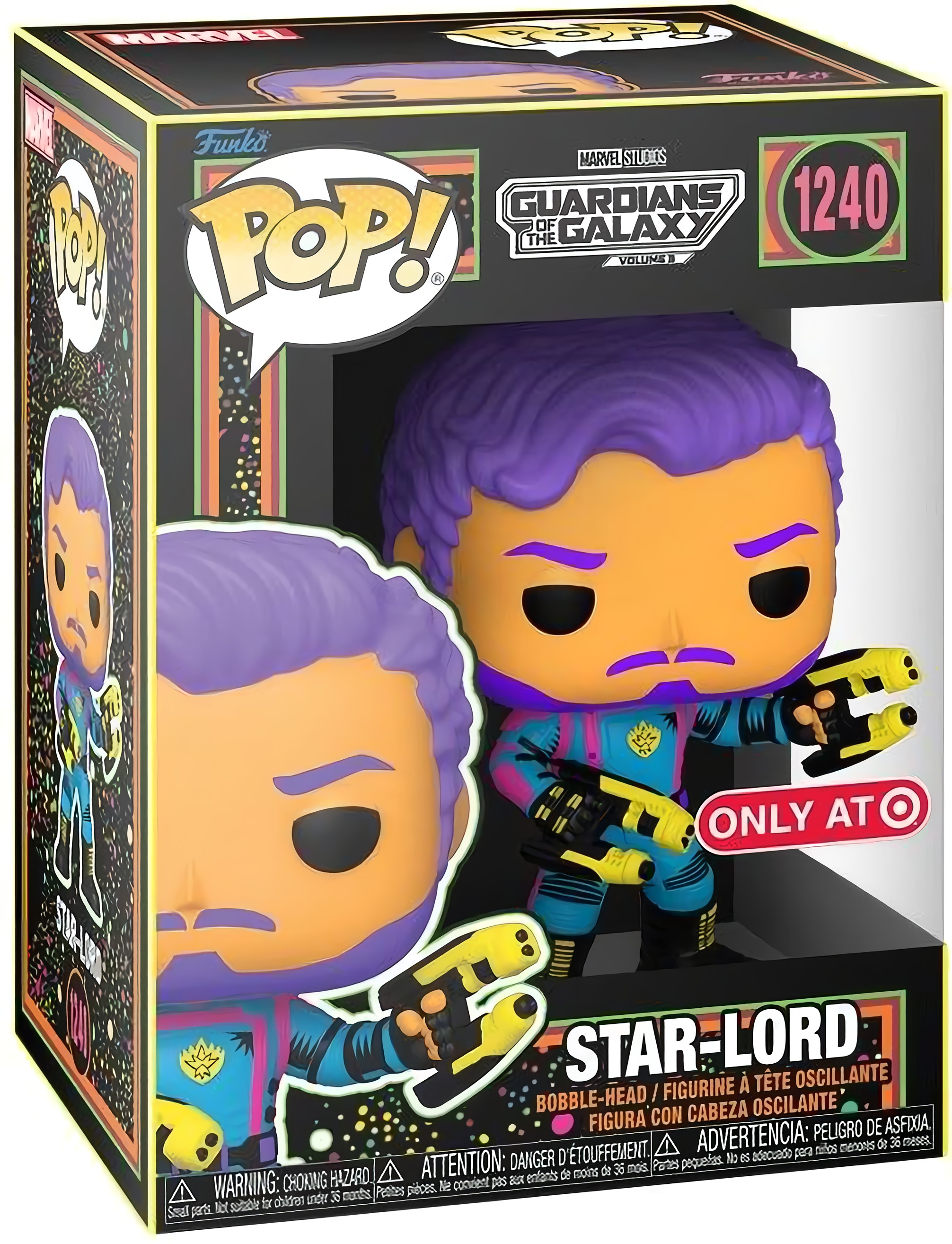 Характеристики фигурки Funko POP Marvel: Guardians Of The Galaxy 3 – Star-Lord Blacklight Exclusive Bobble-Head (11 см):