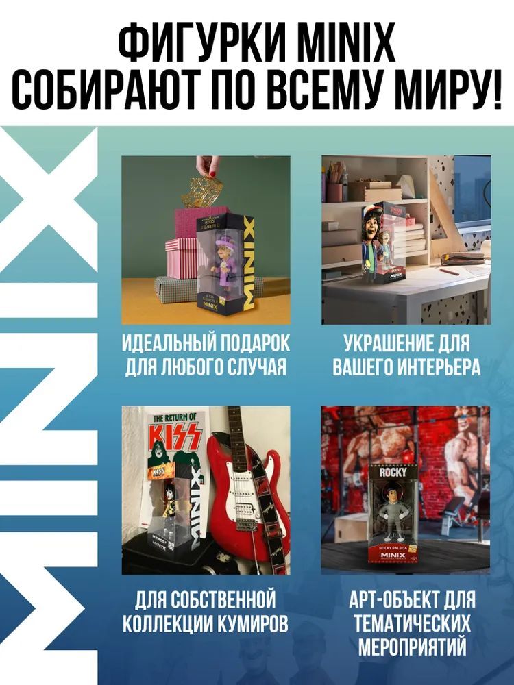 MINIX – это новое понятие коллекционных фигурок, где вы сможете найти своих любимых персонажей из мира развлечений. MINIX великолепно передает характерные черты и сущность своих героев, выводя сходство на новый уровень. С постоянно расширяющейся вселенной создаваемых персонажей, Minix будет продолжать пополнять свой ассортимент необходимыми коллекционными изделиями.