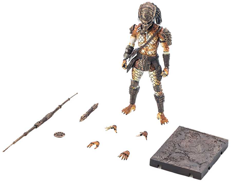 Фигурка Predator: Stalker – высокодетализированная оригинальная фигурка Хищника в масштабе 1:18, в комплекте с подставкой и дополнительными аксессуарами – копье, трофеи и сменные кисти рук для фигурки.
