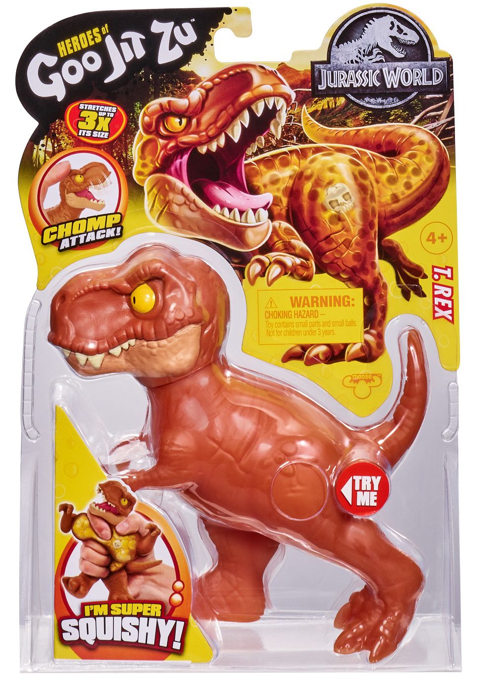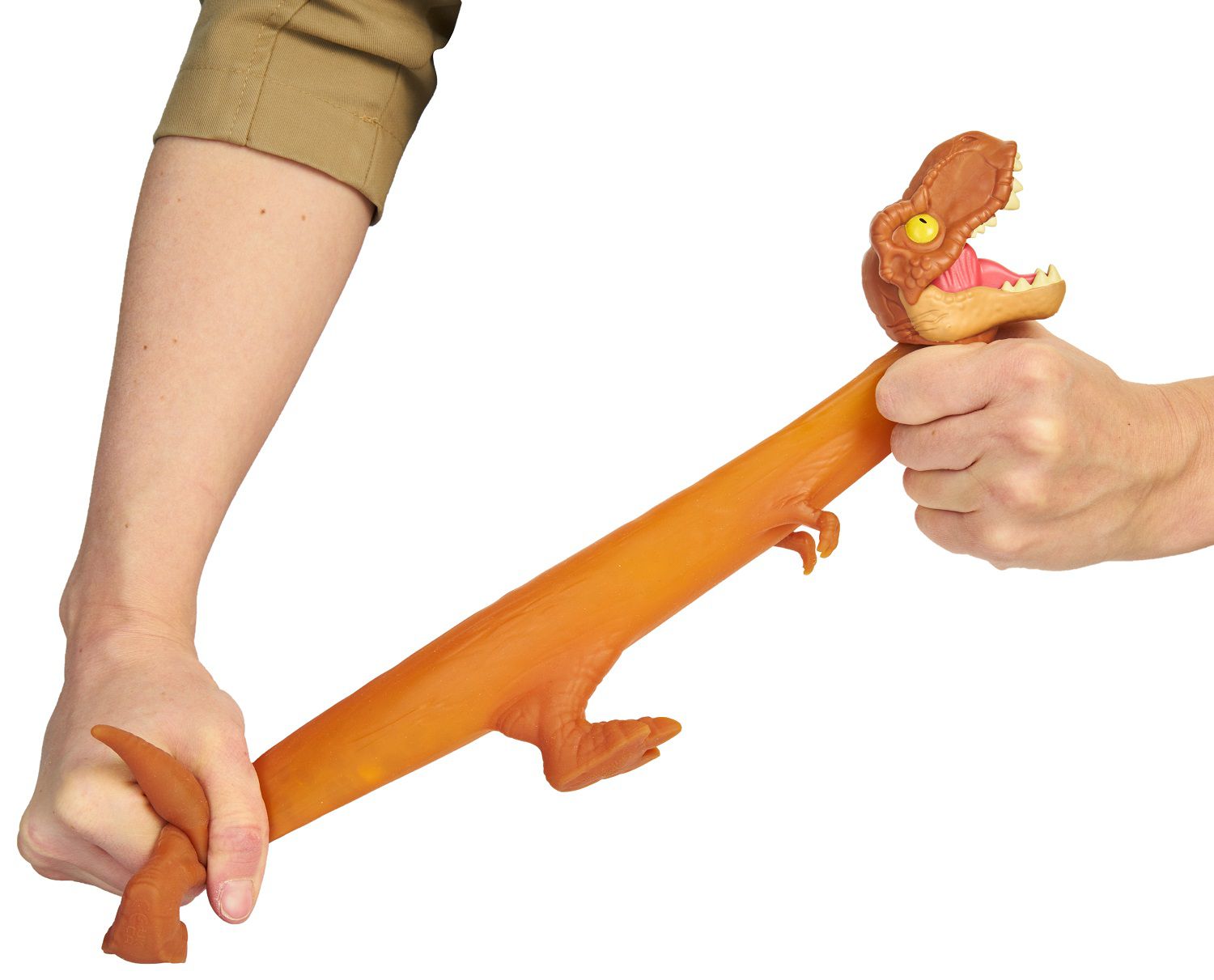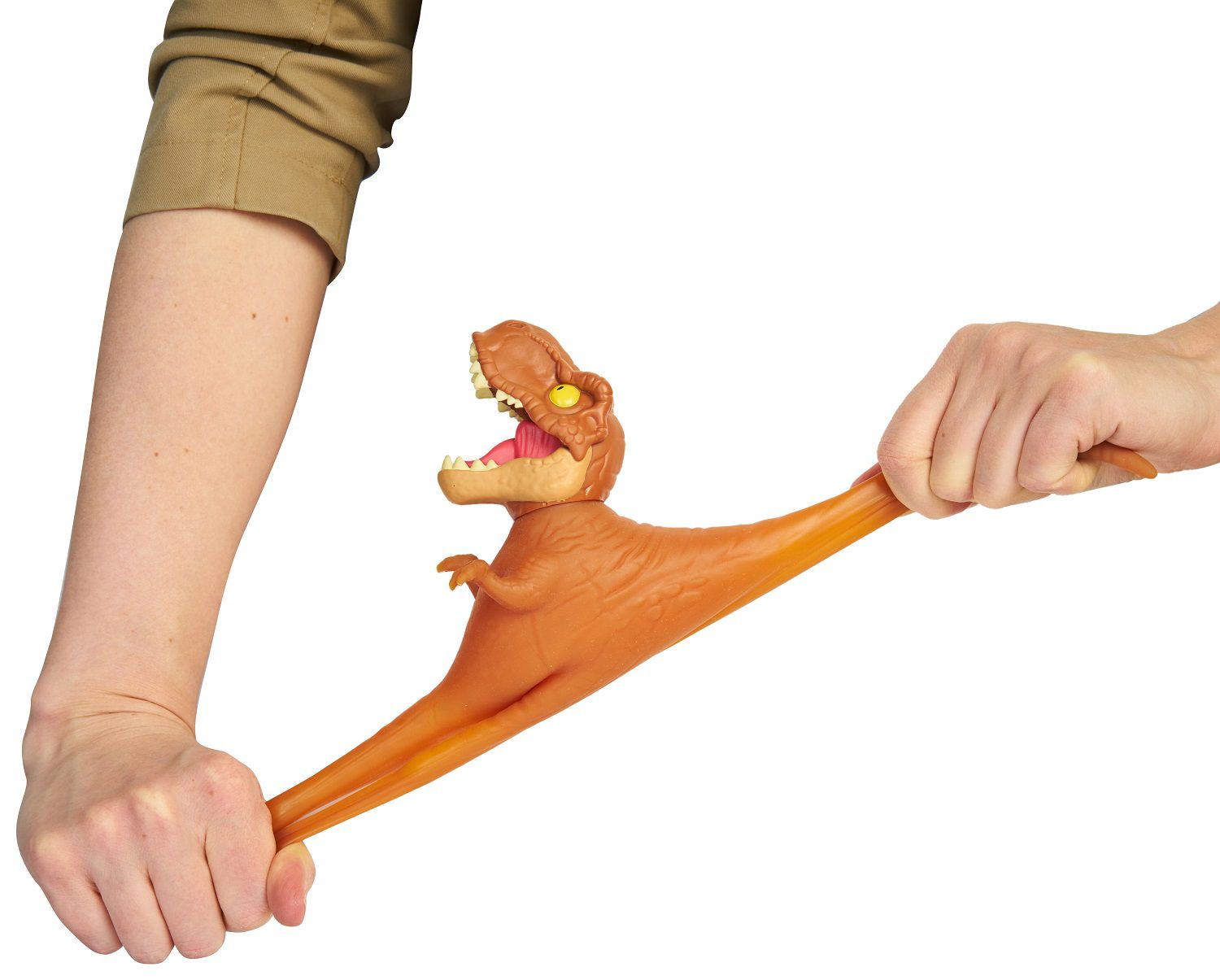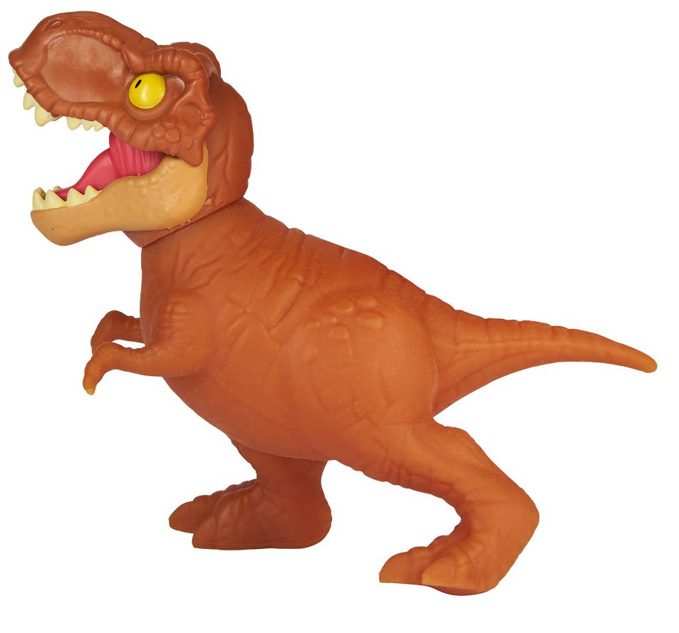 Тянущаяся фигурка динозавра Ти-Рэкс Гуджитсу из Мира Юрского Периода растягивается в 3 раза и принимает первоначальную форму. Игрушка наполнена полимерными шариками и мини-фигурками черепов; обладает подвижной челюстью.