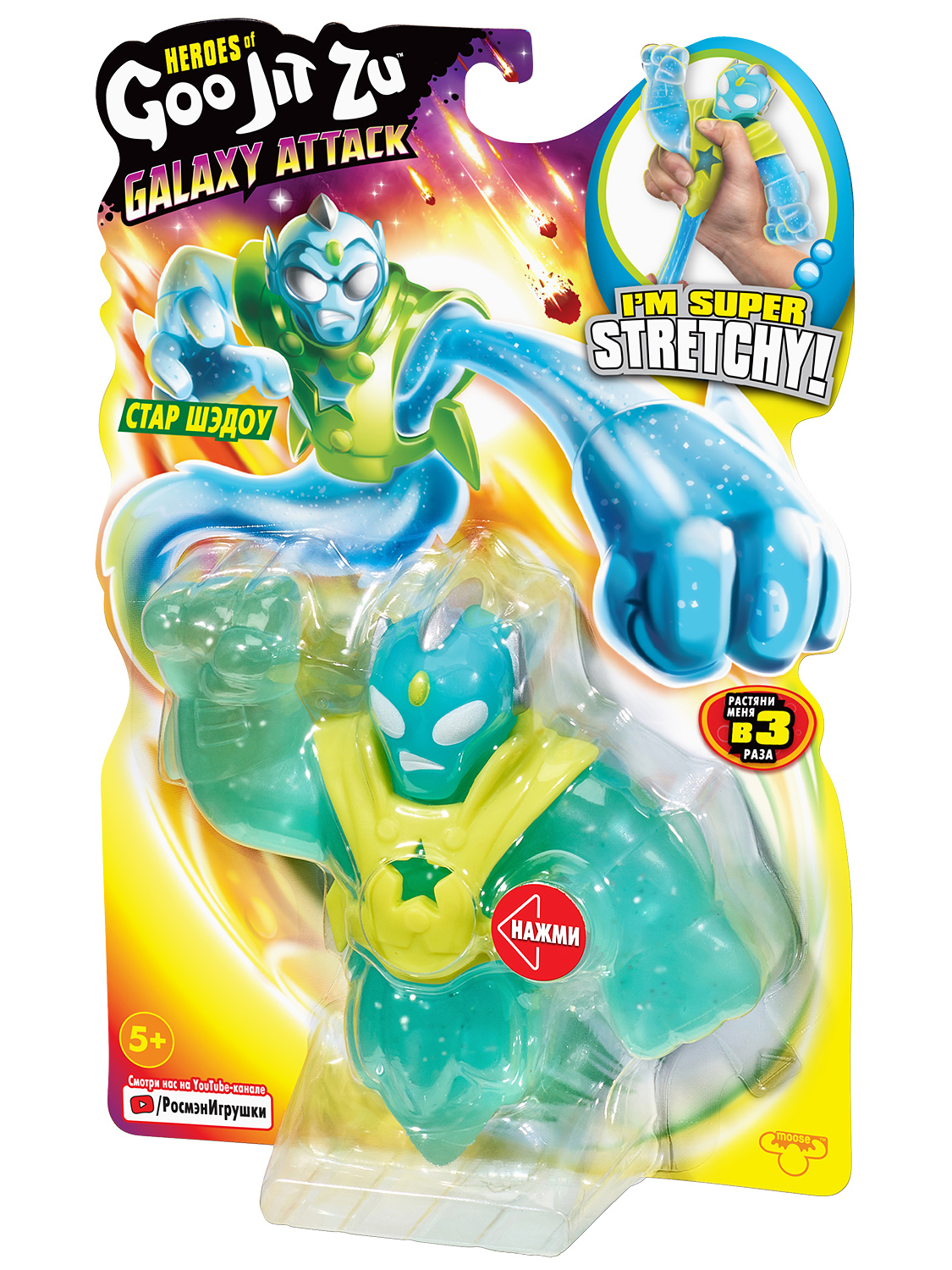 Встречайте Стар Шедоу – одного из самых тягучих инопланетных Гуджитсу во Вселенной. Сжимай и растягивай Стар Шедоу, чтобы увидеть его необычное эластичное наполнение. Он очень мягкий и супертягучий, а потому всегда вернется в свой первоначальный облик!
